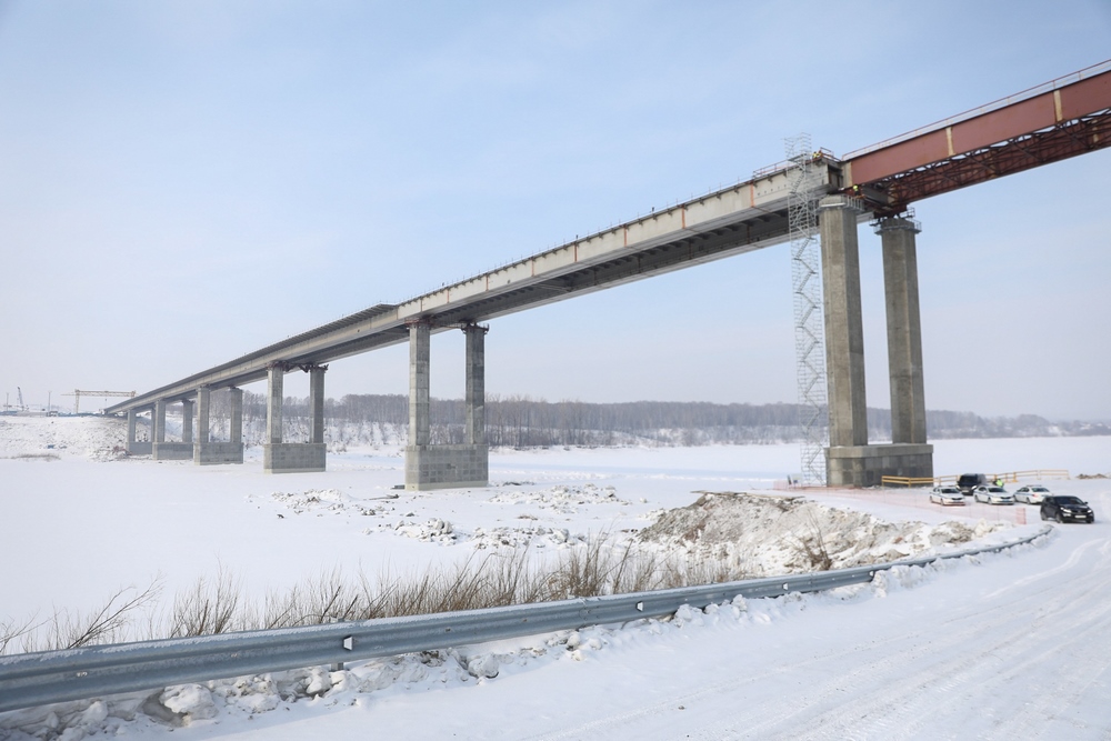 Губернатор Сергей Цивилев на площадке возведения нового моста через реку Томь дал команду на проведение восьмого этапа надвижки.