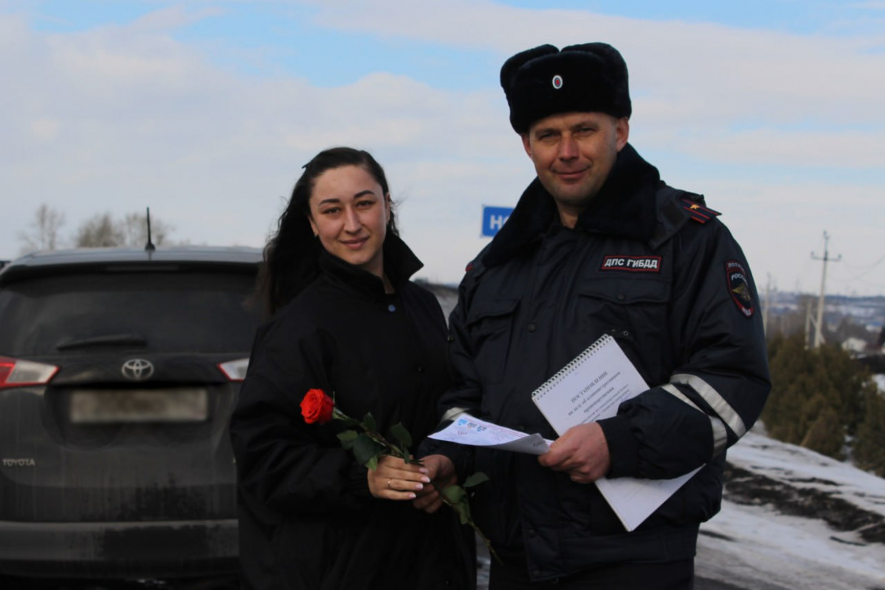 Автолюбительницам напомнили основные правила безопасности на дорогах, обратили внимание на уважительное отношение к другим участникам дорожного движения. После профилактической беседы, в честь наступающего праздника, сотрудники полиции поздравили автоледи с наступающим праздником, вручили цветы
