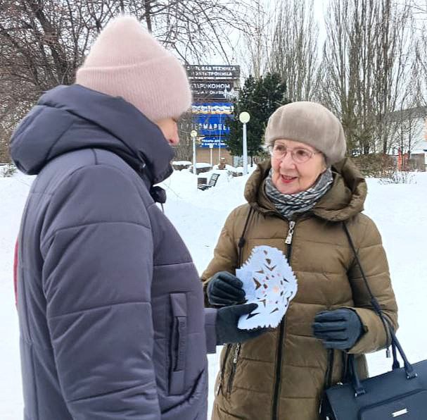 В любимом сквере жителей ФПК активисты дарили прохожим зимние сувениры