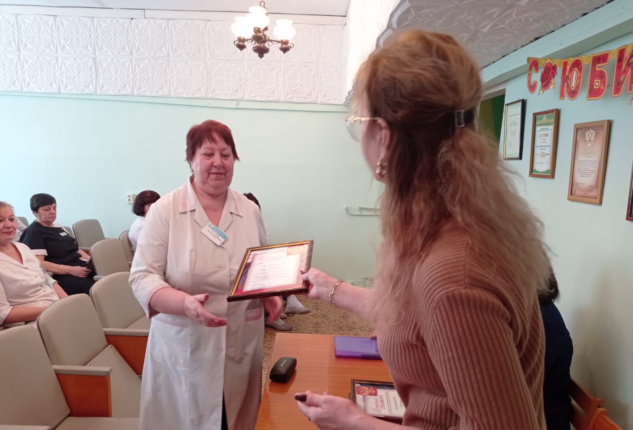 От имени главного врача Кузбасского клинического кожно-венерологического диспансера Евгения Георгиевича Белова коллектив ОСП поздравила начальник отдела кадров Наталья Ивановна Морозова и передала самые наилучшие пожелания. А также она вручила заслуженным работникам благодарственные письма и почетные грамоты.